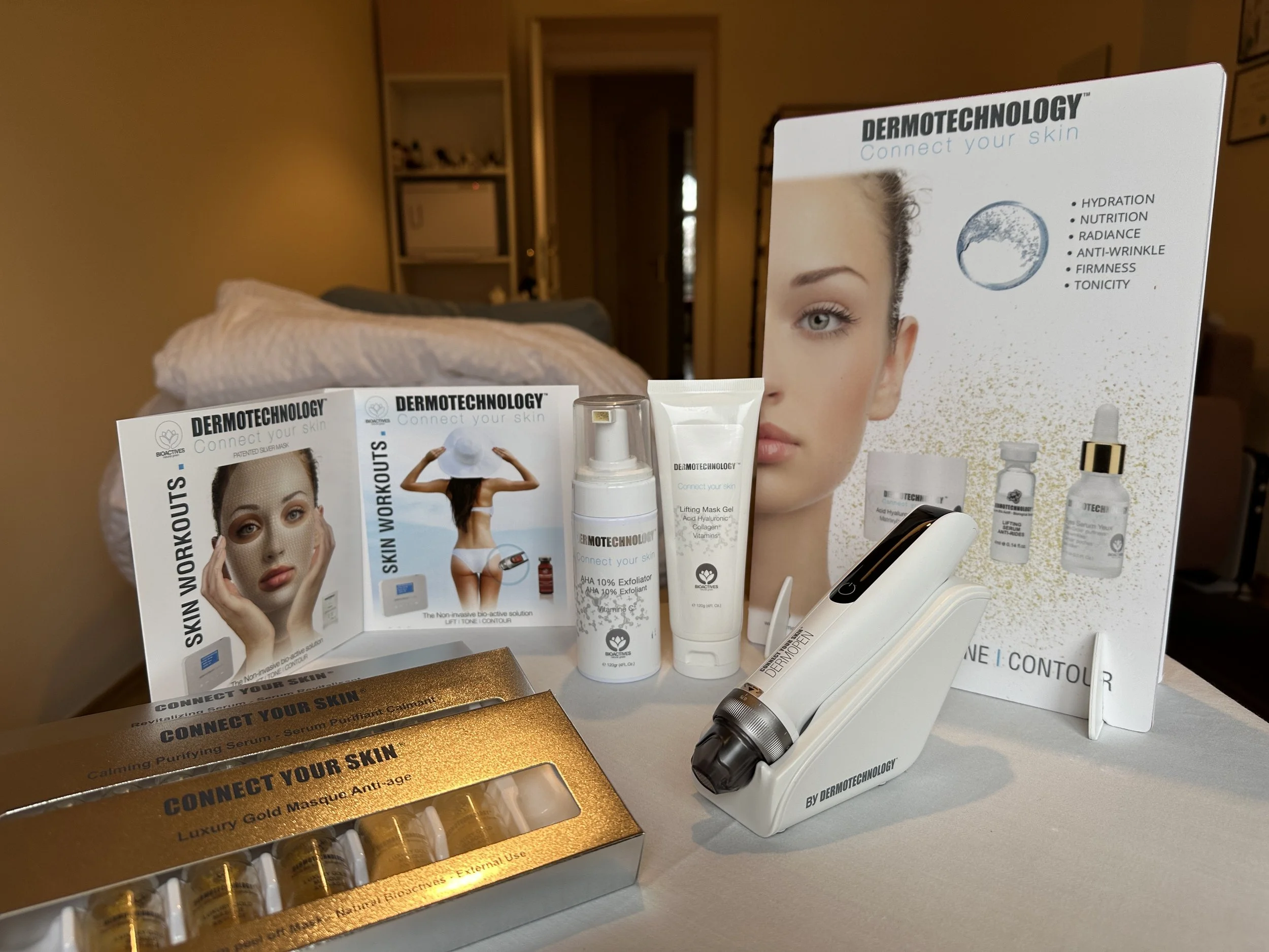 All supplementary products are professional formulations by Dermotechnology, highly potent and rich in natural bio-active ingredients, and can be combined with the treatment to achieve enhanced, targeted results.